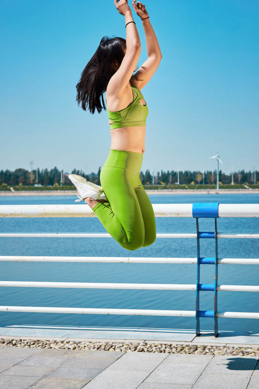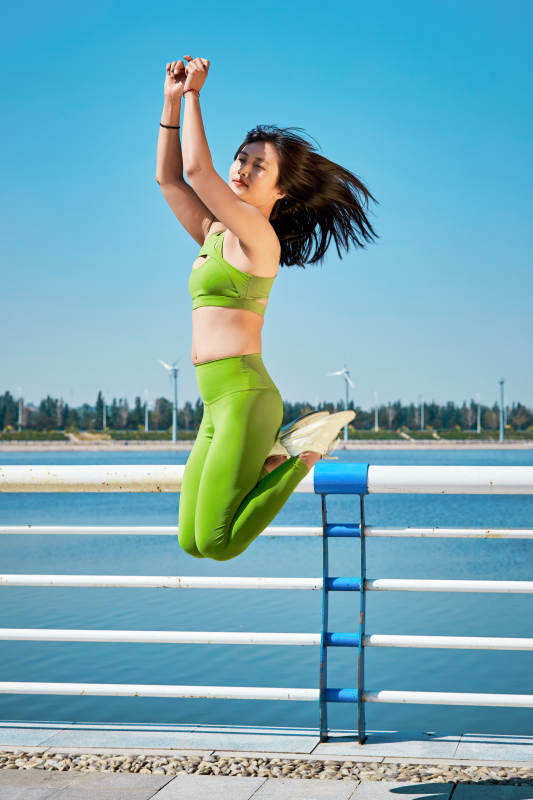 户外河畔公园进行跑步锻炼的亚洲女性