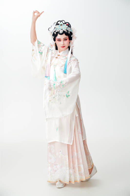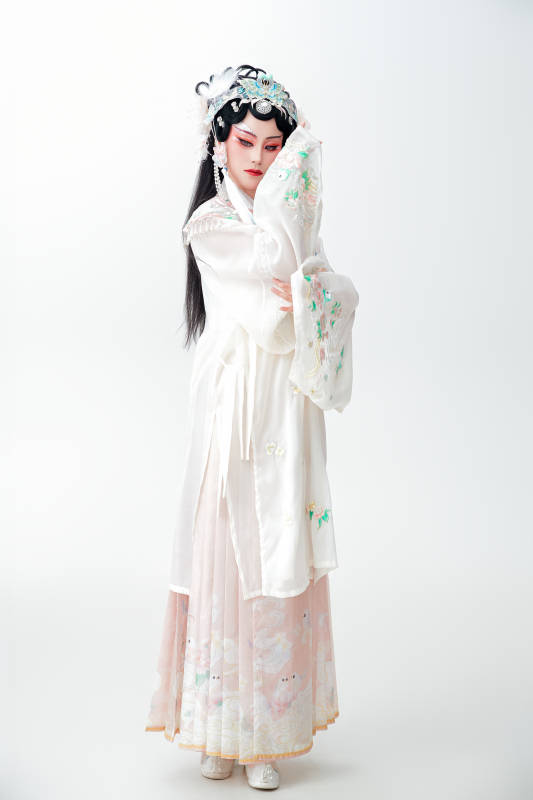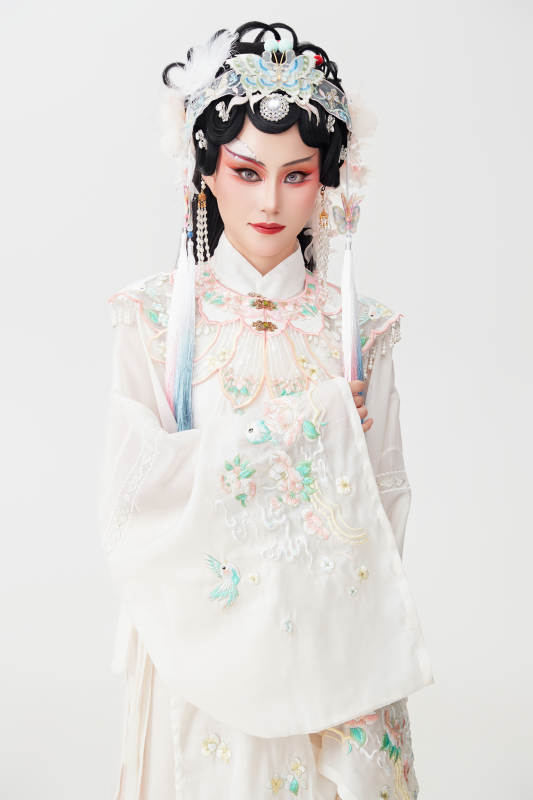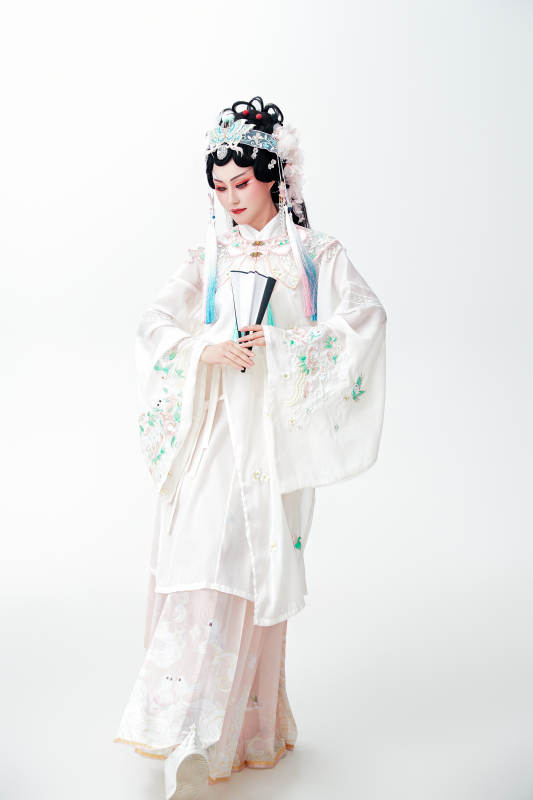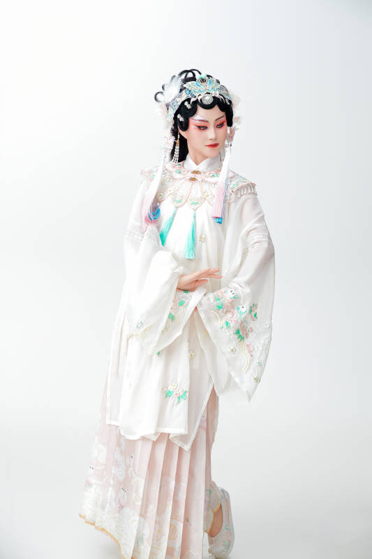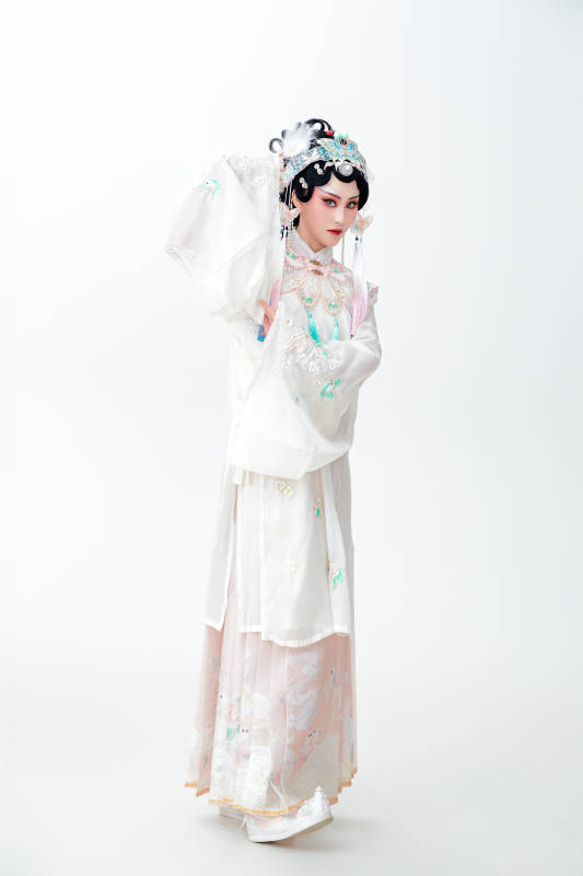 白色背景下国潮新派戏曲装扮的亚洲美女