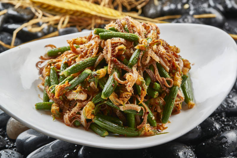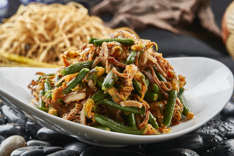 白色瓷盘装的凯撒酱配新鲜穿心莲