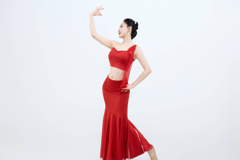 表演中国传统民族舞蹈傣族舞的美丽舞者
