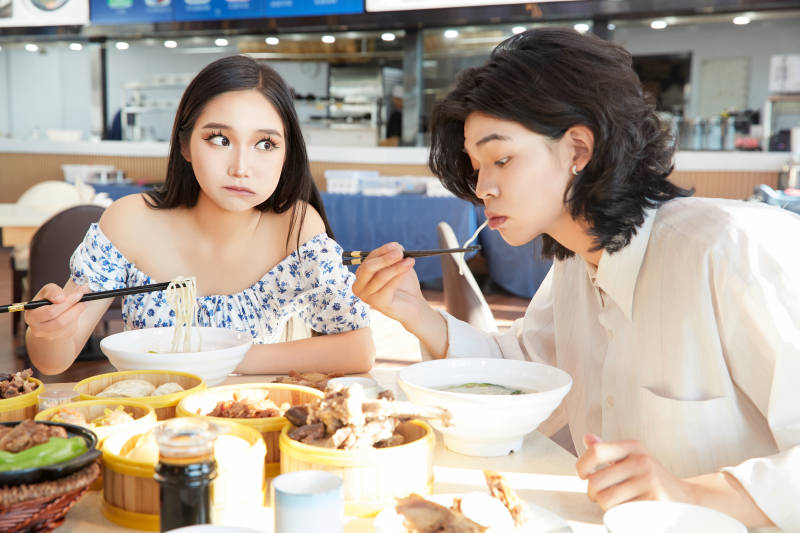 在茶餐厅大吃特吃的东方情侣
