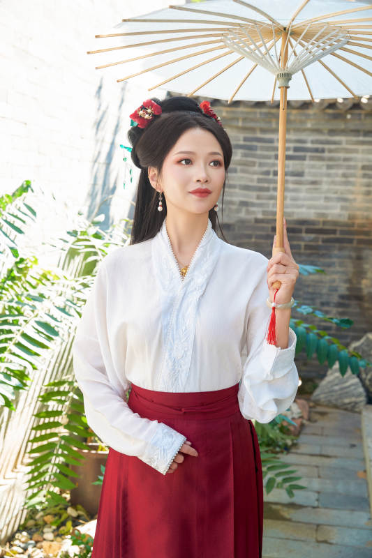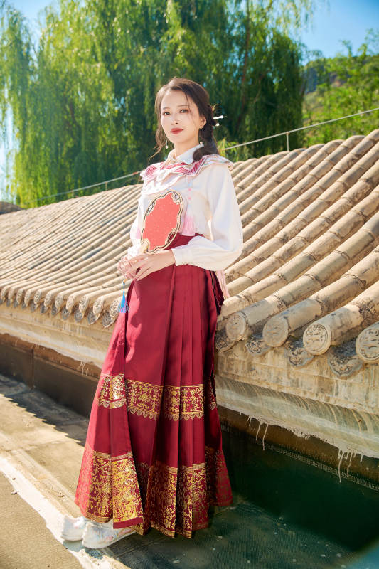 身穿国潮戏曲服饰装扮手拿花扇的中国美女