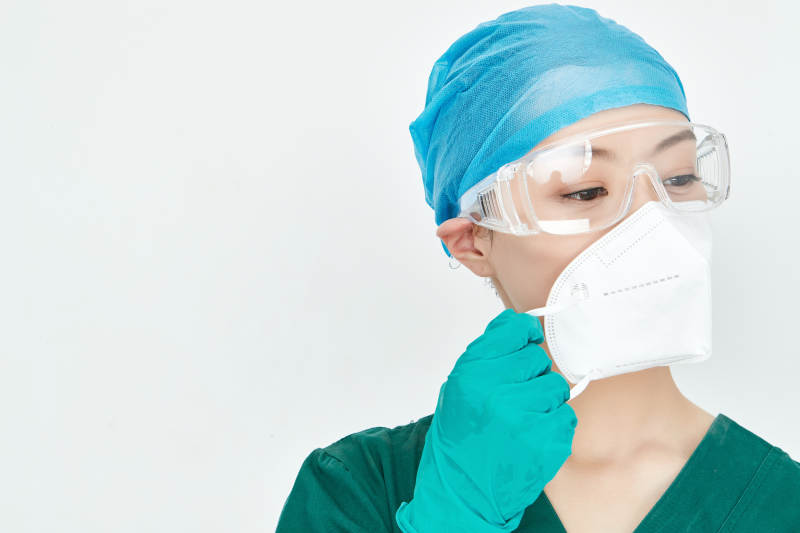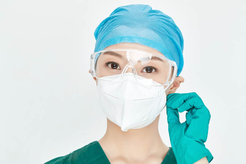 穿白色防护服佩戴护目镜口罩的防疫人员