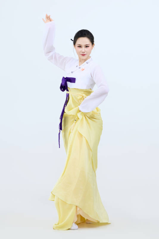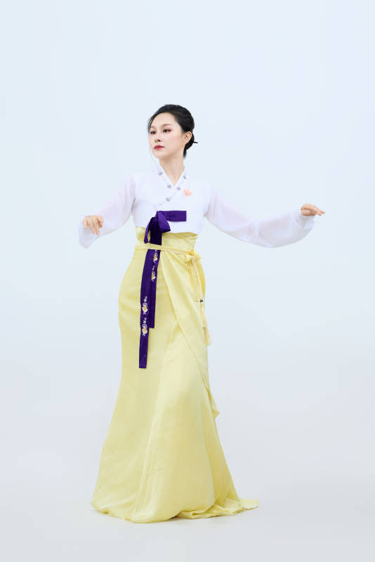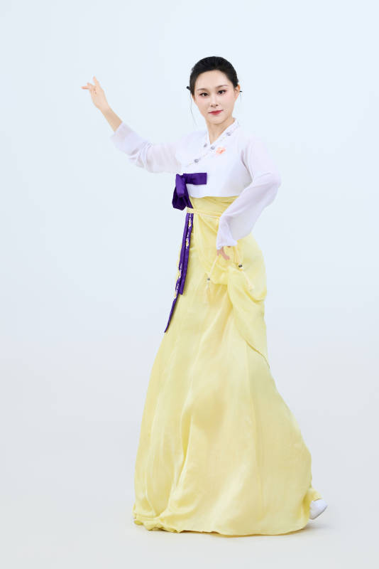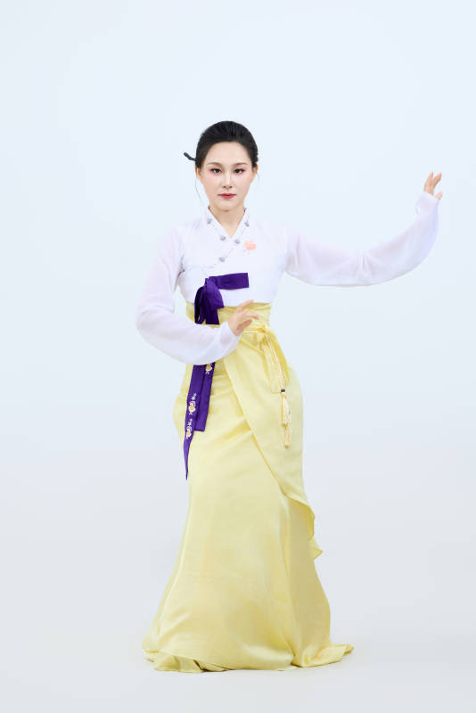 表演中国传统民族舞蹈傣族舞的美丽舞者