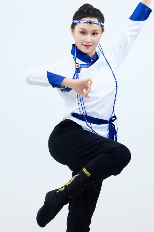 表演中国传统民族舞蹈蒙古族舞的美丽舞者