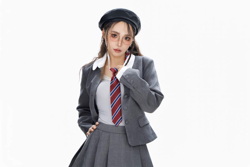 影棚拍摄身穿制服装扮时尚的亚洲美女