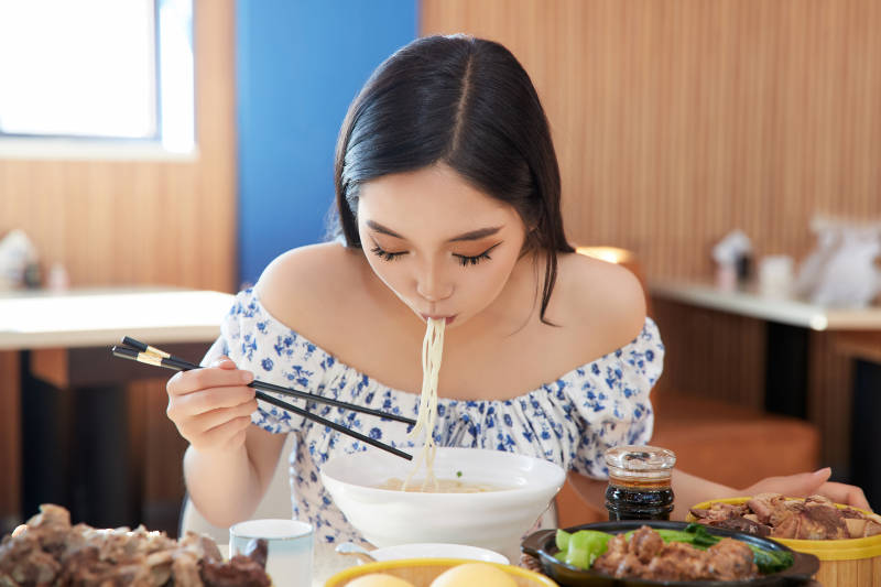 在茶餐厅大吃特吃的美女