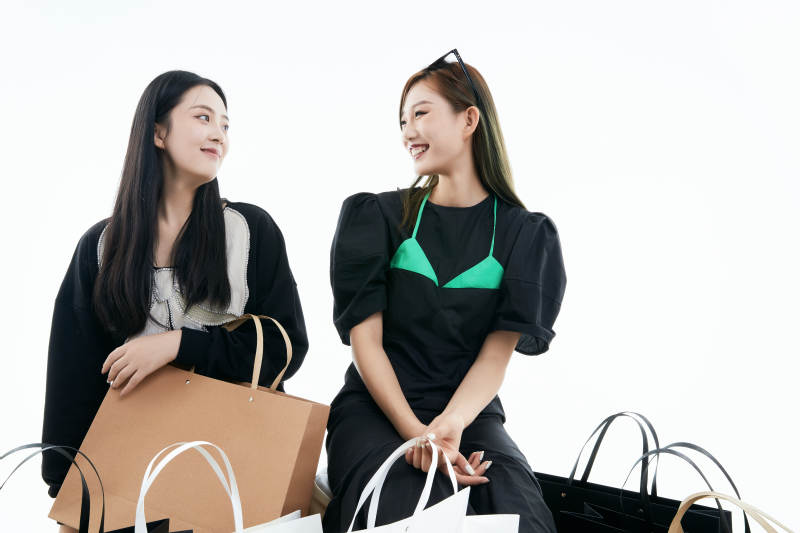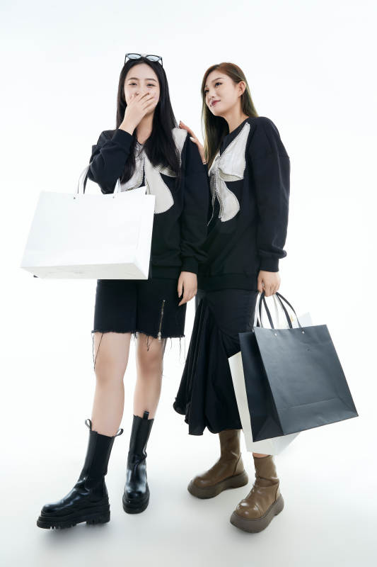 白色背景下手提购物袋时尚美丽的亚洲少女