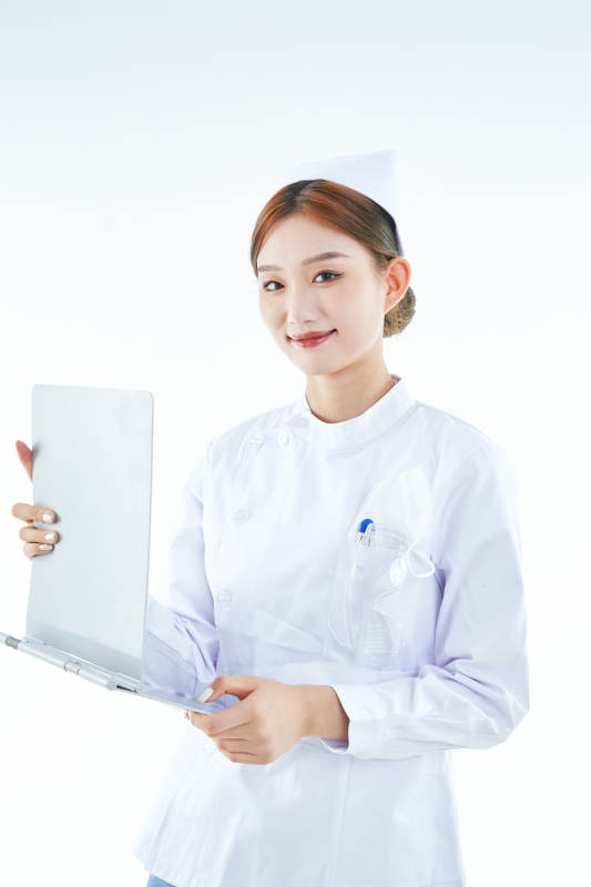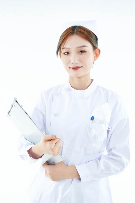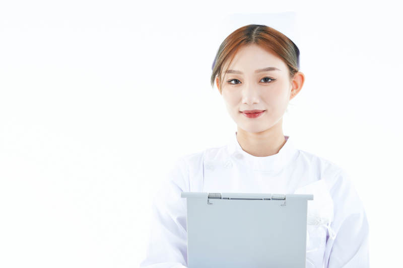 白背景里穿护士服手持病历夹的美女护士