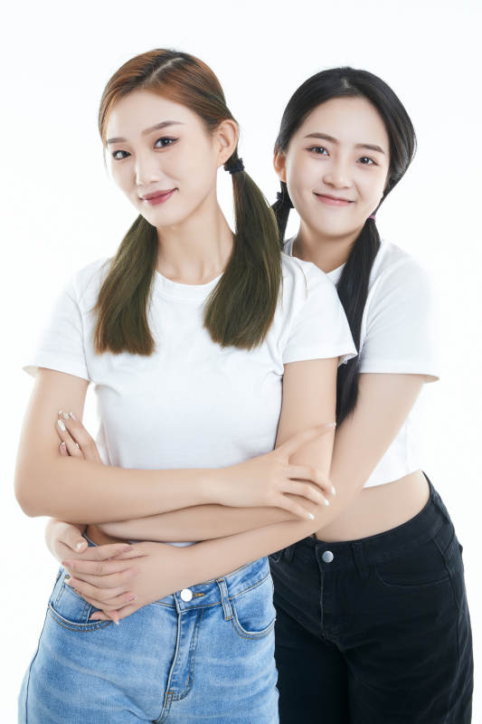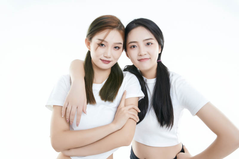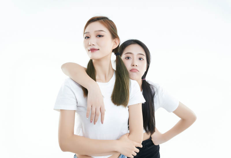 影棚拍摄白色背景的可爱闺蜜少女
