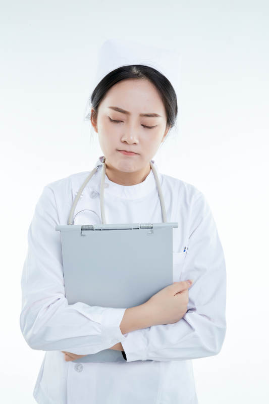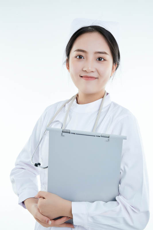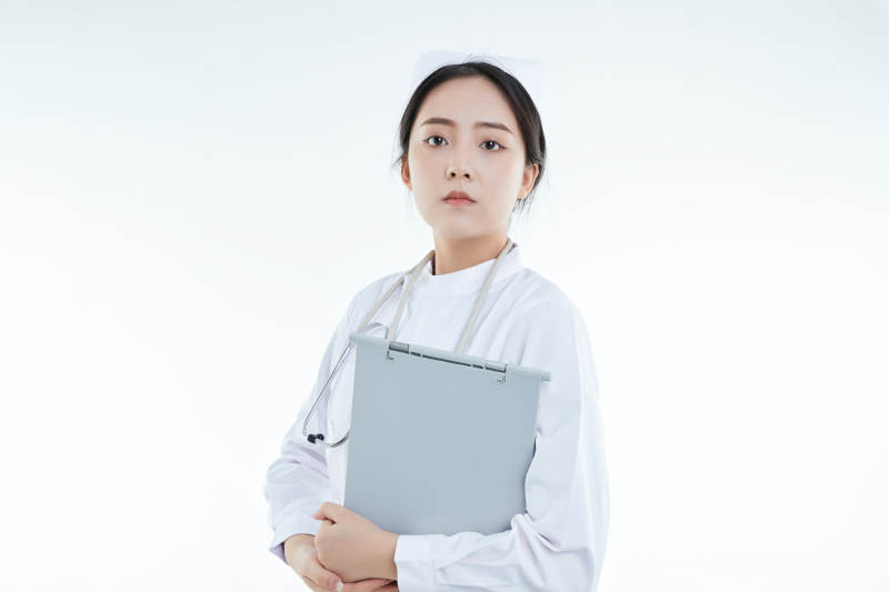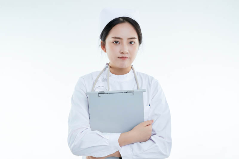 白背景里穿护士服手持病历夹的美女护士