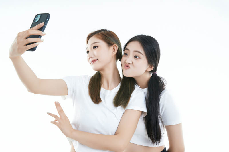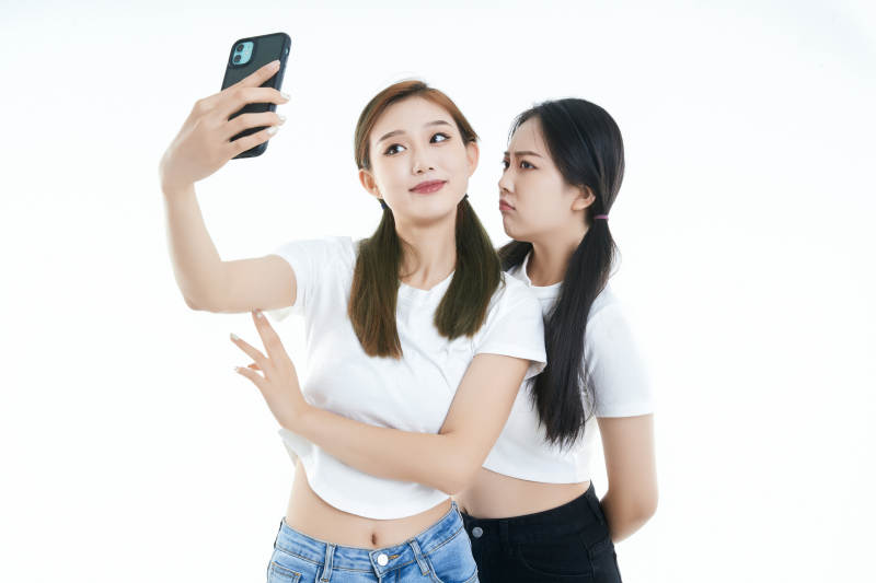 使用手机自拍的亚洲可爱闺蜜少女