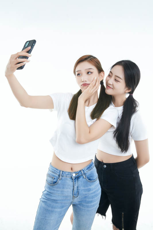 影棚拍摄白色背景的可爱闺蜜少女
