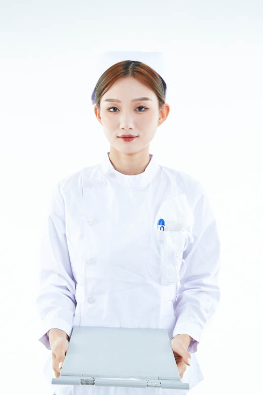 白背景里穿护士服手持病历夹的美女护士