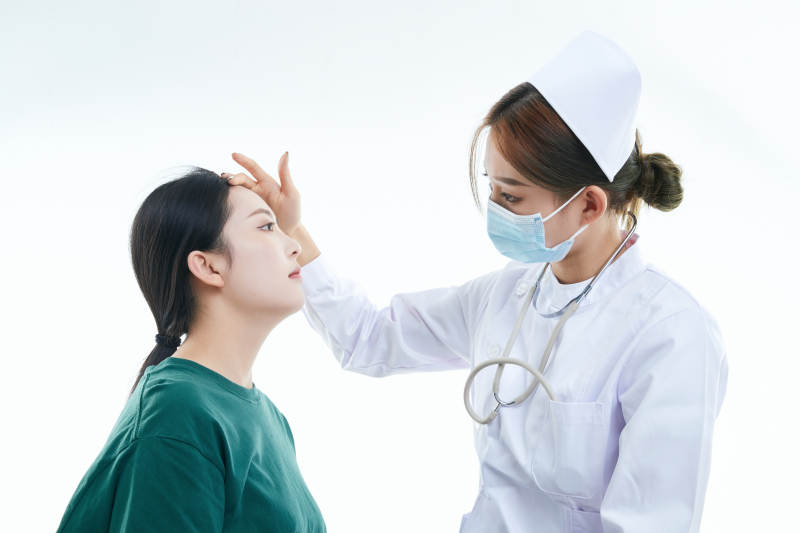 佩戴听诊器的女性医护人员为患者听诊检查