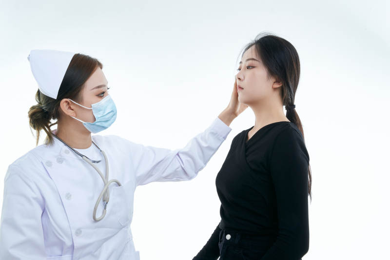 年轻的女性医护人员为患者进行胸部检查
