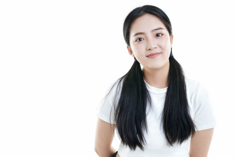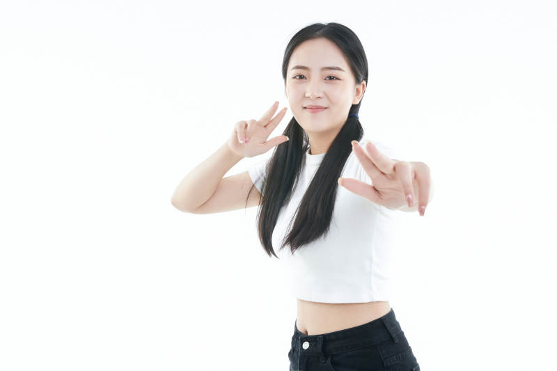 白色背景下手提购物袋时尚美丽的亚洲少女