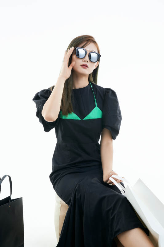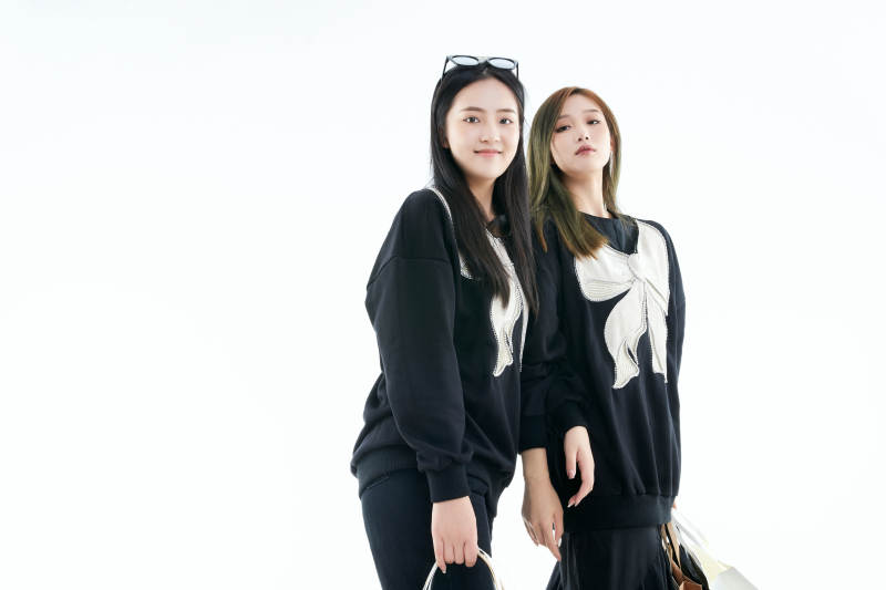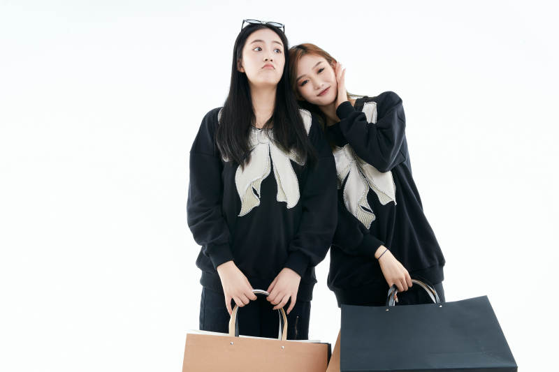 白色背景下手提购物袋时尚美丽的亚洲少女