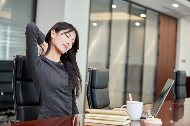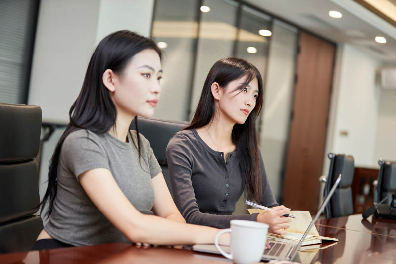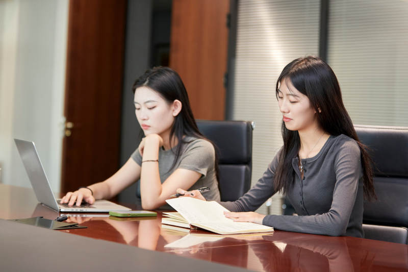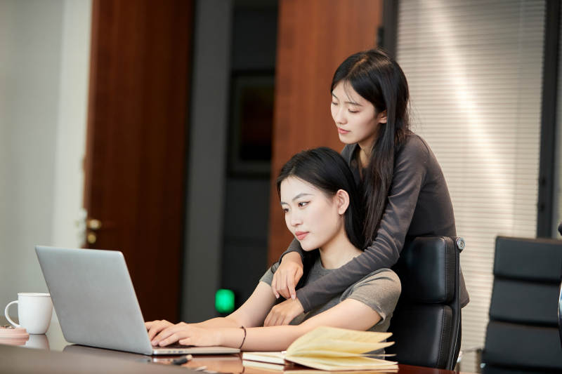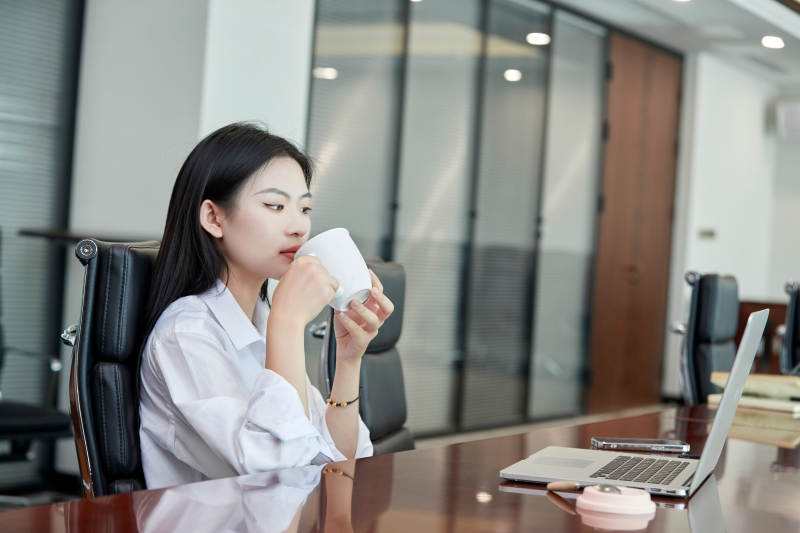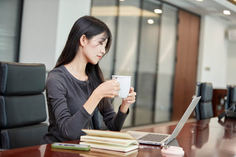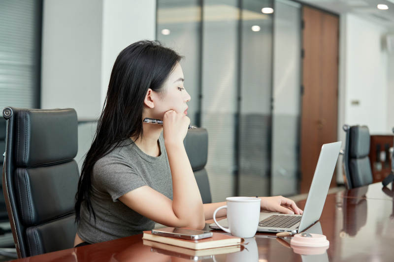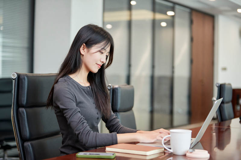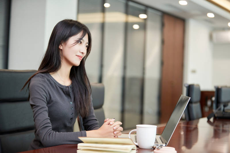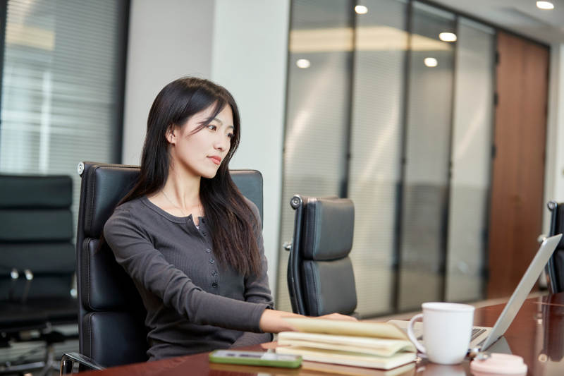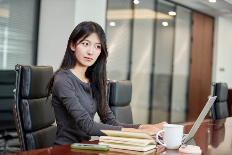 在室内使用电脑办公的亚洲白领女性