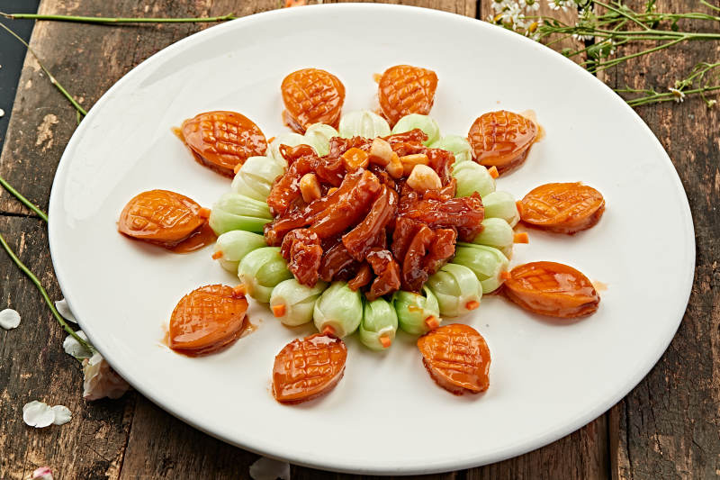 红烧肉配贝类拼盘