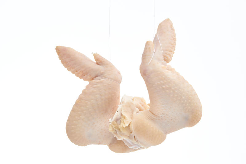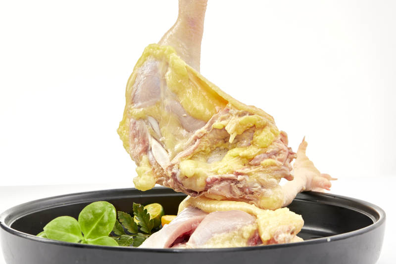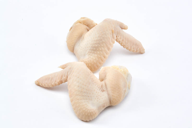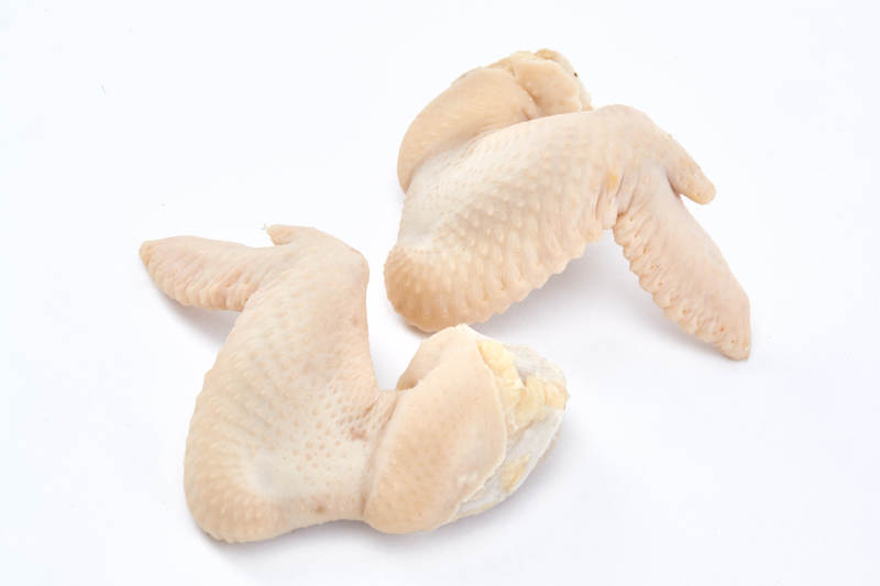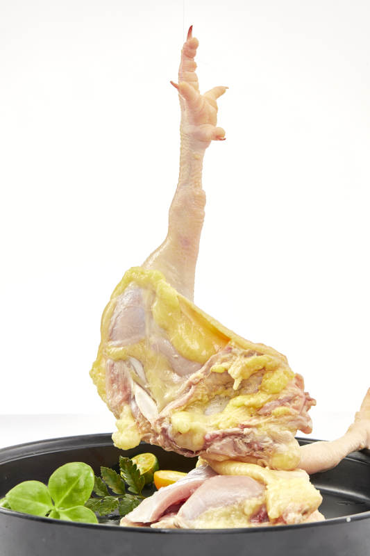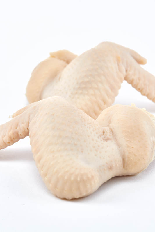 摆放在白色背景上分切好的生鲜鸡腿