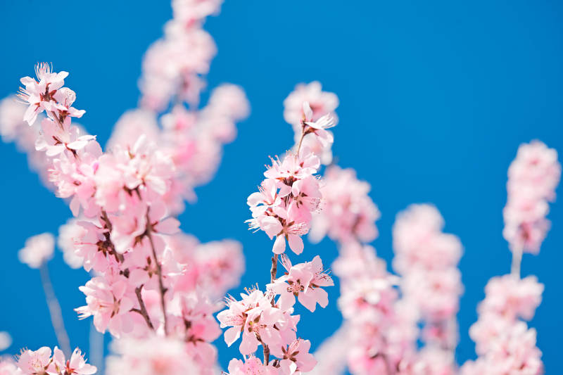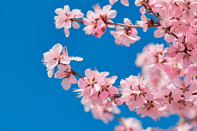 春天户外盛开的桃花