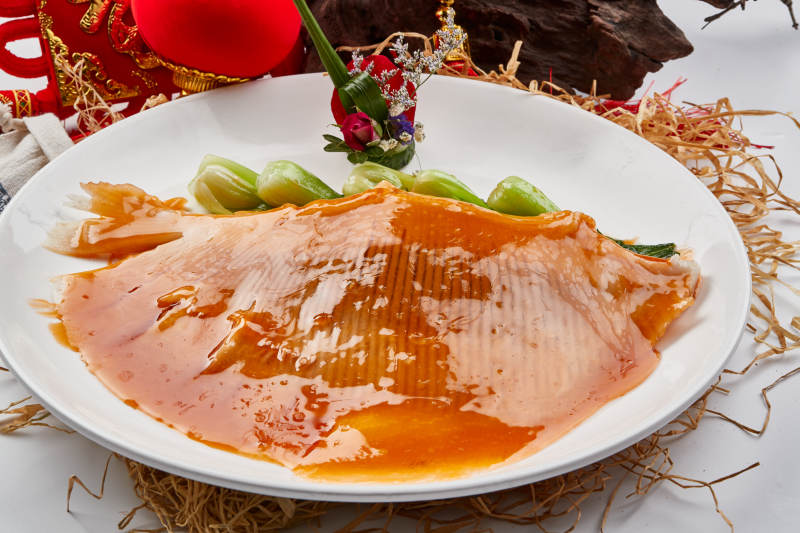 黑色磁盘装的浇汁粉丝蒸虾仁