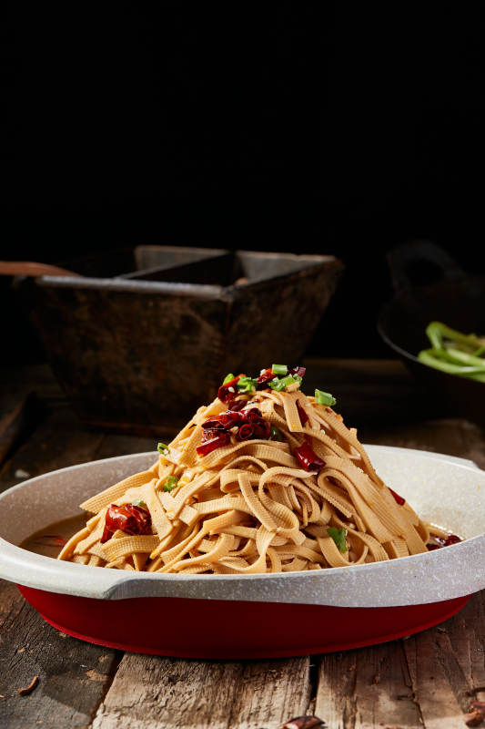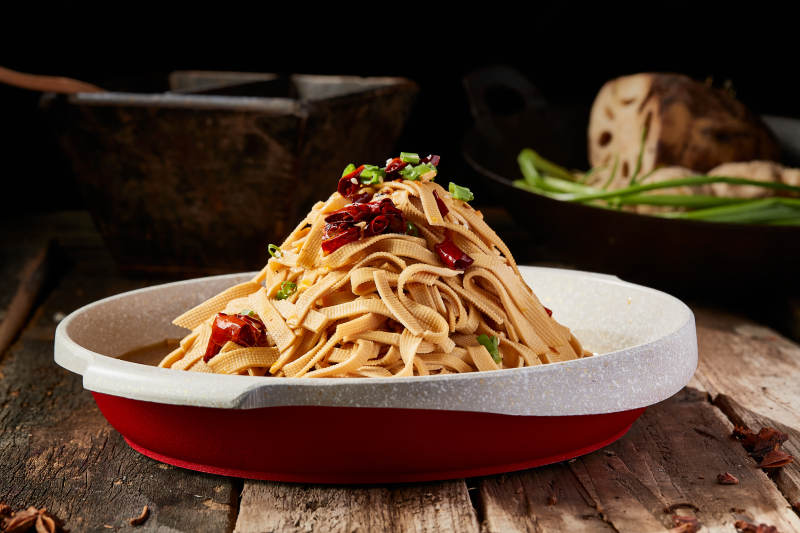 白色椭圆瓷盘装的凉拌浇汁西芹丝