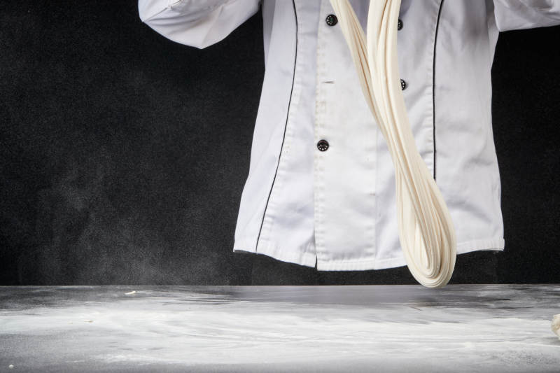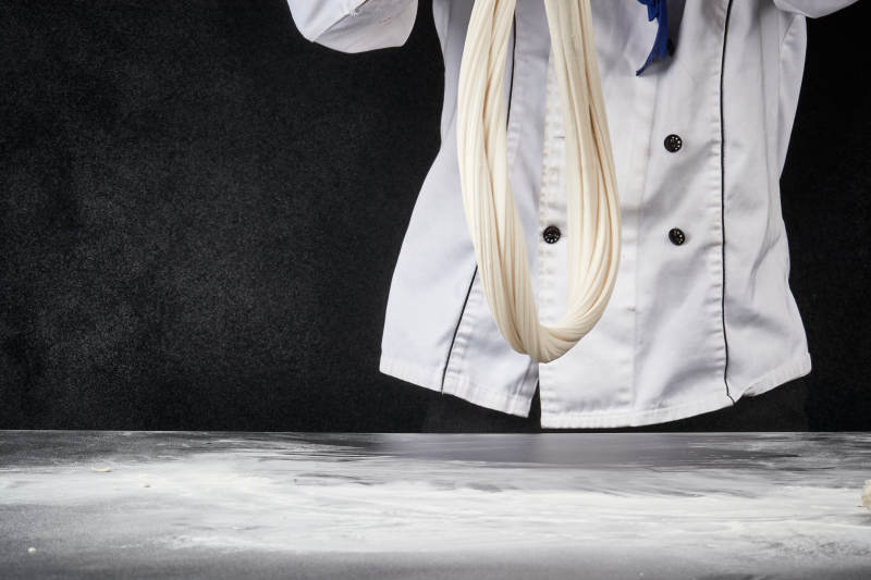 技艺精湛的拉面师在展示拉面制作
