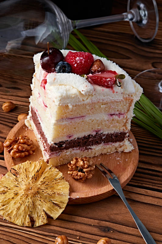鲜水果椰蓉雪花生日蛋糕