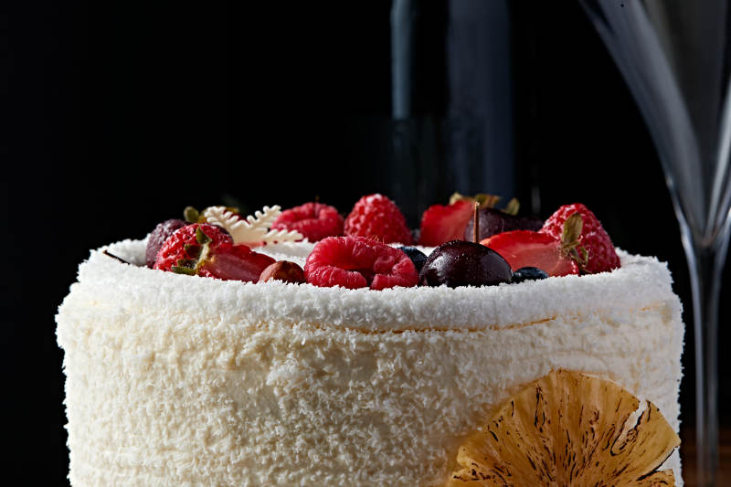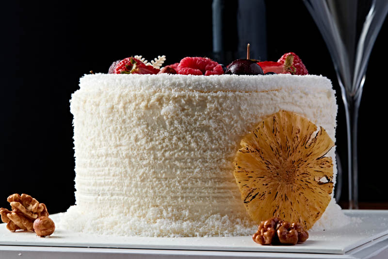 鲜水果椰蓉雪花生日蛋糕
