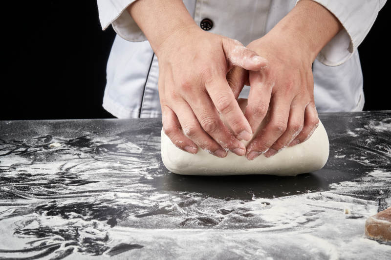 技艺精湛的拉面师在展示拉面制作