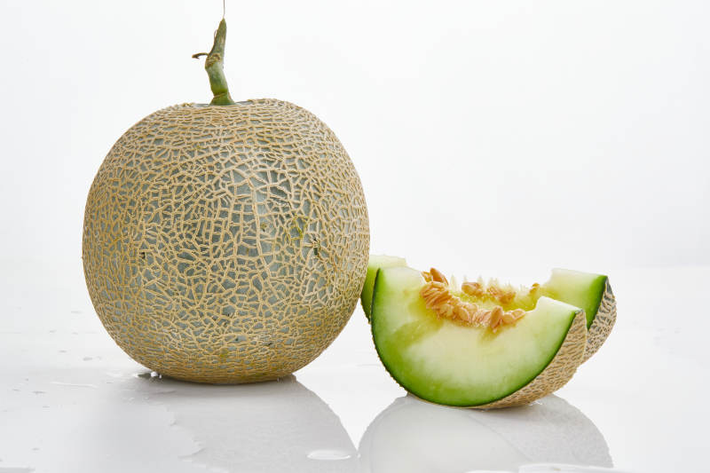 白色背景上摆放的新鲜哈密瓜