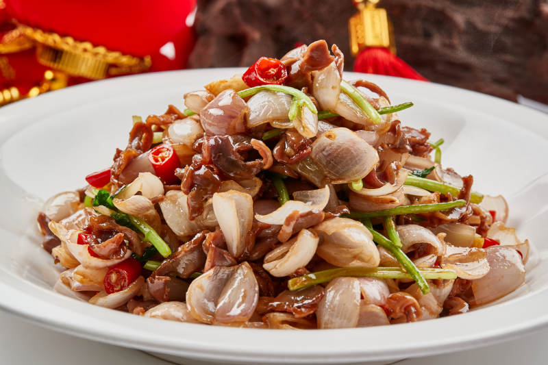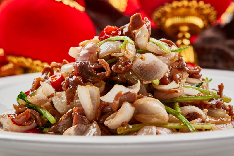 精美瓷餐具装的杏仁麦片烤龙虾球