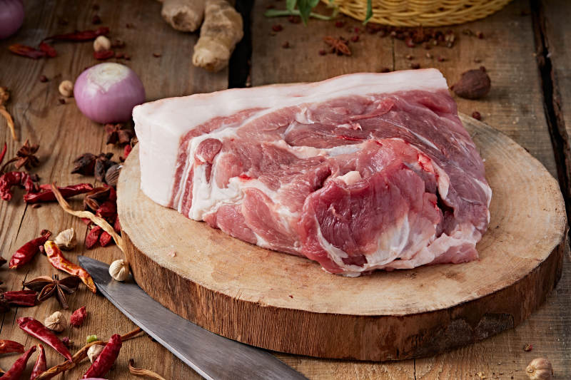 精美餐具装的鸡胸肉压咸蛋黄切片
