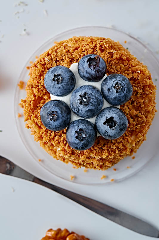 蓝莓白巧克力鲜奶慕斯榴莲蛋糕