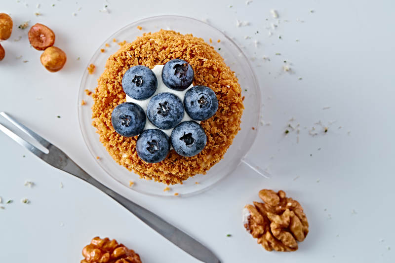 蓝莓白巧克力鲜奶慕斯榴莲蛋糕