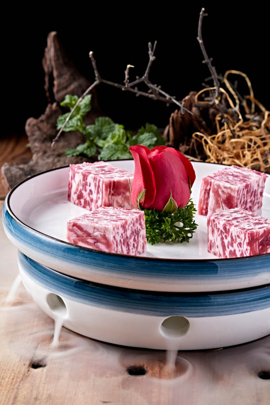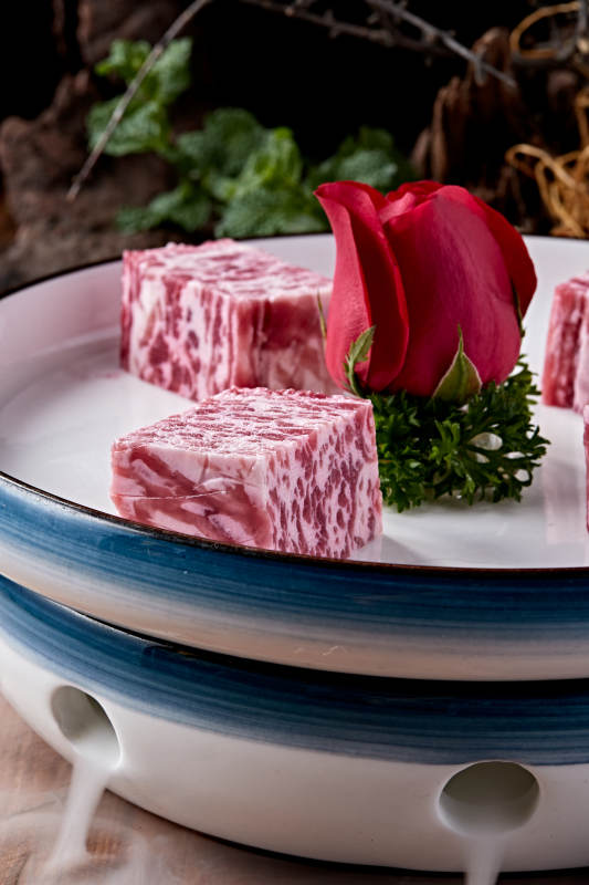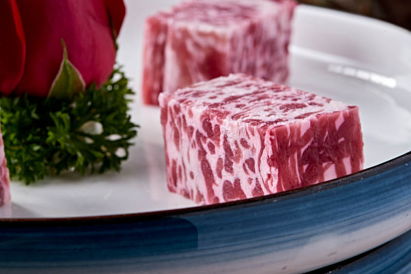 日式雪花和牛样式的果酱奶油蛋糕