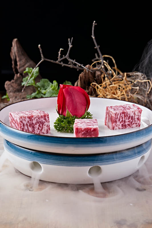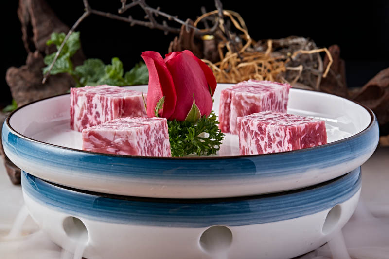 日式雪花和牛样式的果酱奶油蛋糕