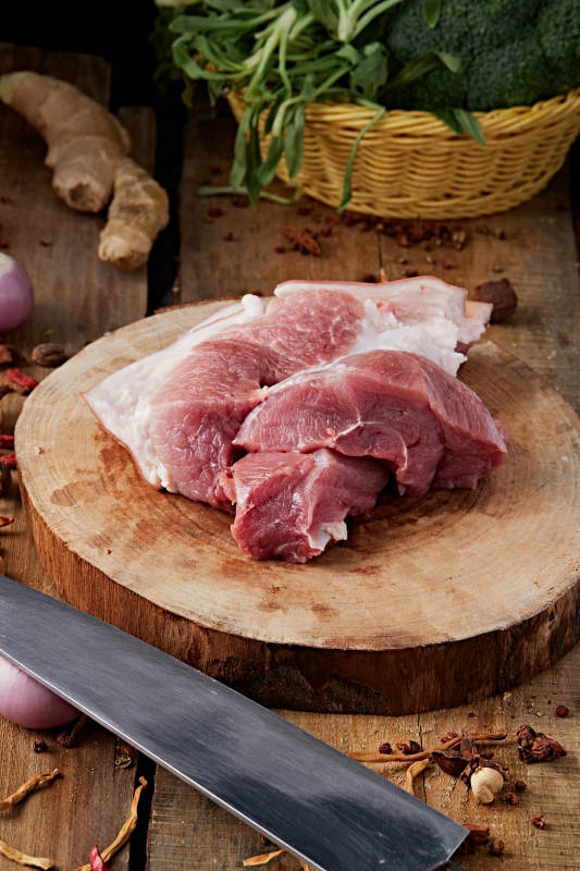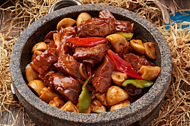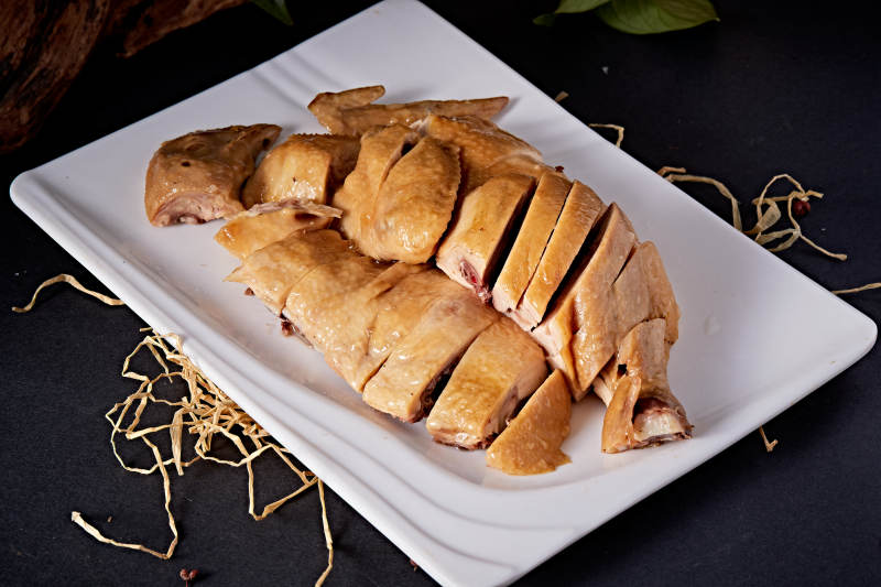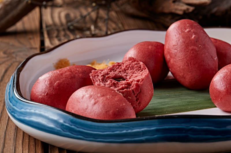 白色背景上精美竹笼屉装的港式蒸肚丝