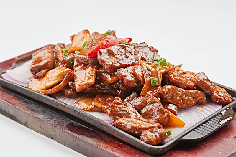 白色瓷盘装的肉沫鲜椒蒜香黑木耳
