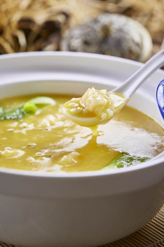 白色瓷盘装的蟹籽鸡蛋醸鹅肝