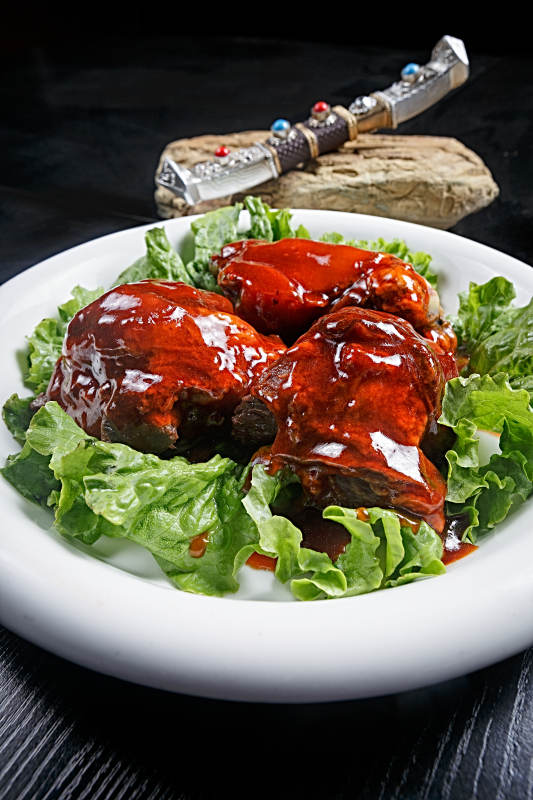 陶瓷餐具装摆的内蒙古特产牛肉干