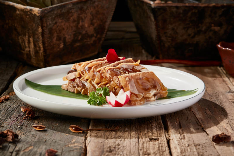 陶瓷餐具装摆的内蒙古特产牛肉干