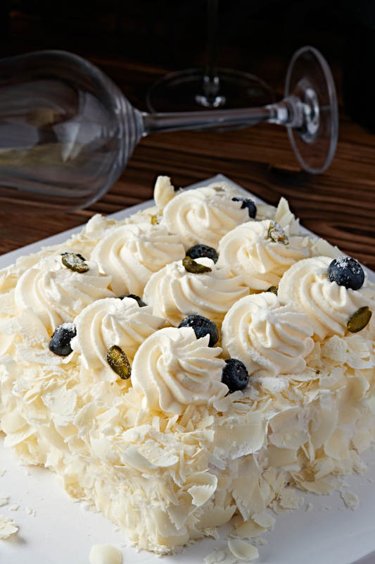蓝莓白巧克力鲜奶慕斯榴莲蛋糕