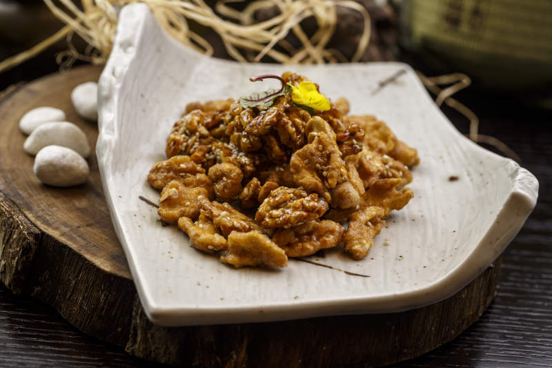 鲍汁扣辽参摆放在干冰缭绕的水中