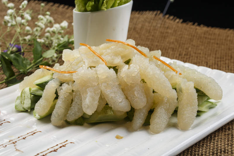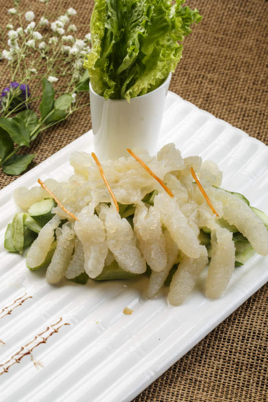 白色瓦楞瓷盘装的老醋蛰头