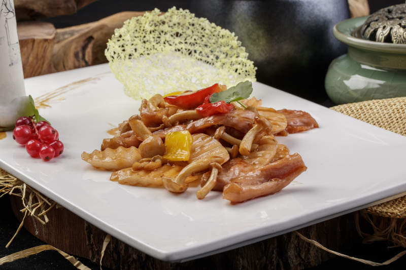 精美餐具装的白玉肘花切片