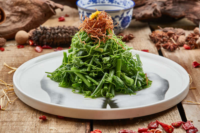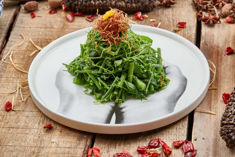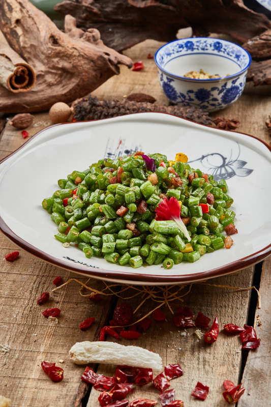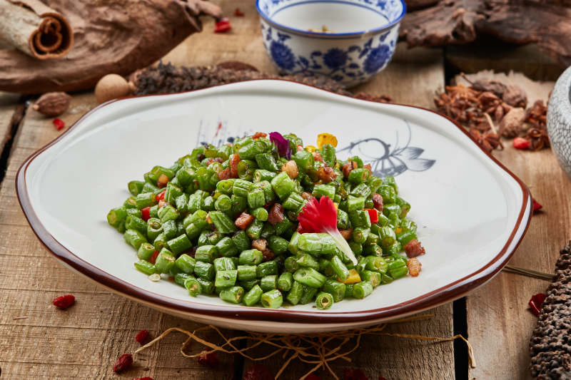精美餐具装的小炒豇豆