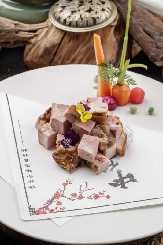 白色瓷盘装的柴沟堡熏肉